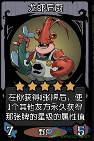 2、龙虾后厨获得一张牌之后使随机一个其他友方获得那一张卡牌的星级的属性。