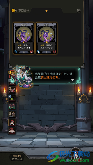4、每一次的战斗都会有一个胜利者,之后当英雄角色的生命值为零时,你的对局就结束了。