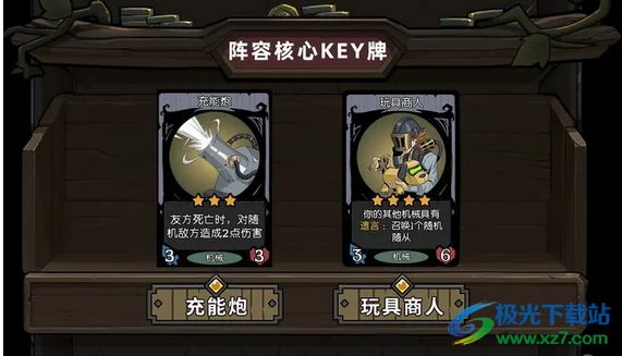 2、阵容核心KEY牌:充能炮、玩具商人。