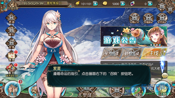 1、进入游戏大厅,遵循命运的指引,点击画面右下的“召唤”按钮吧。