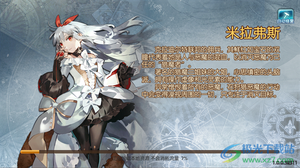 6、米拉弗斯:克拉迪尔特联邦的佣兵,其鲜红如宝石的双瞳代表着她是人与恶魔的混血,以消灭恶魔为己任的“猎魔者”著名的猎魔三姐妹的大姐,心思缜密的头脑派,拥有操作虚像和光灵素的能力。异常憎恨着所有的恶魔,在狩猎恶魔的行动中会变得漠视周围的一切,只专注于消灭目标。