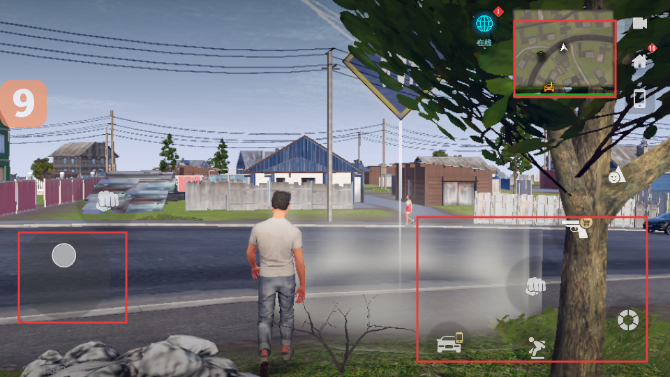 1、通过左侧虚拟摇杆和右侧功能按钮,控制角色在城市场景中移动、互动,熟悉操作方式。