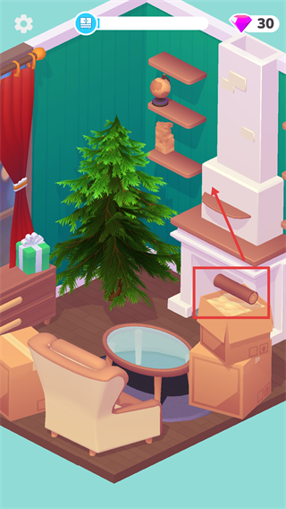 1、找到房间内的【纸箱】,打开后获取装饰相关物品,为后续布置场景积累所需的材料资源。