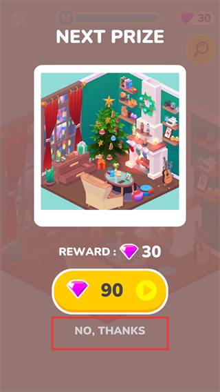 4、完成任务后出现奖励选择界面,点击【NO,THANKS】按钮继续游戏。