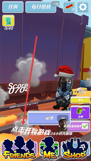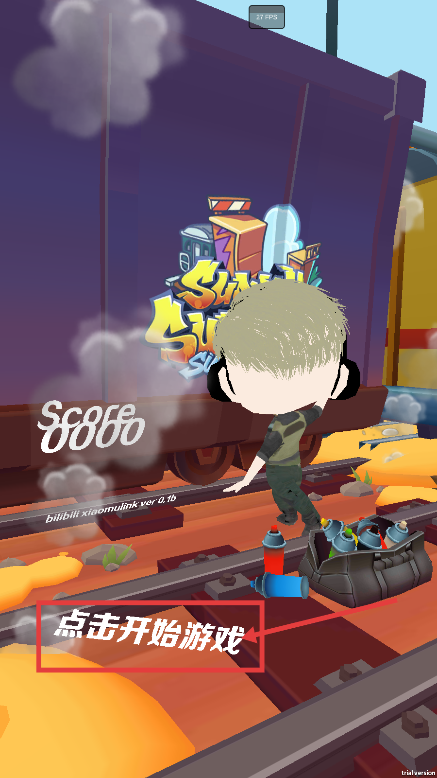 1、进入游戏先点击【点击开始游戏】按钮,进入【Subway-Surf】风格的跑酷场景,开启冒险。