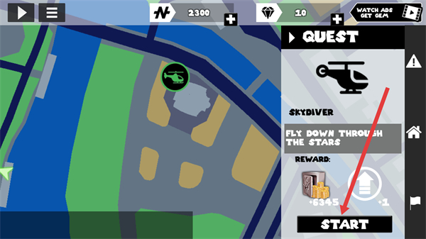 1、找到带有直升机任务,点击下方START开启。