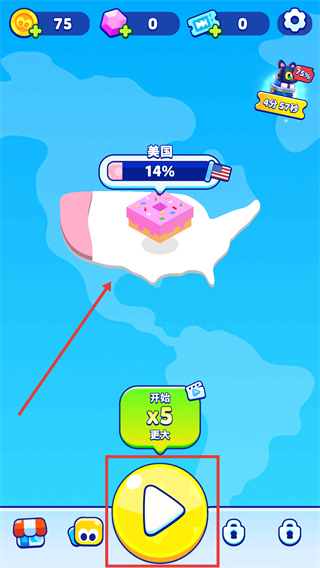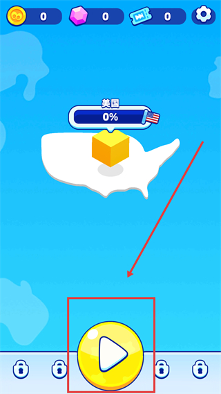 1、点击底部的【黄色播放按钮】,启动对应【美国】区域的游戏内容,开启初始的占领进程。