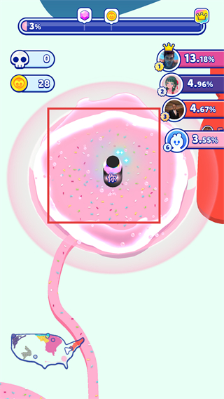 3、进入【甜甜圈】区域后,让角色在触碰到道具,可增加占领进度至【3%】,提升资源获取效率。
