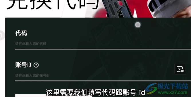 3、进入兑换界面,填写正确的代码和刚刚复杂的个人ID信息。