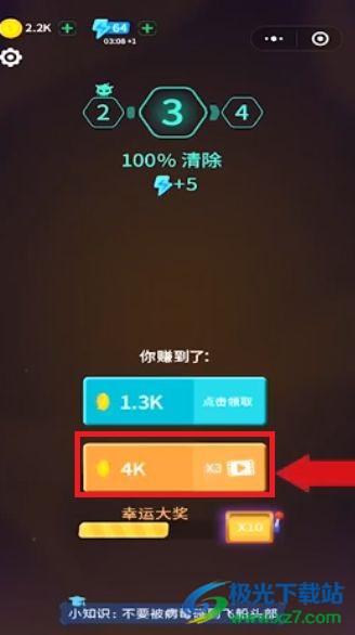 3、完成游戏关卡之后玩家还能够通过观看游戏内的广告以此将游戏奖励就那些翻倍。