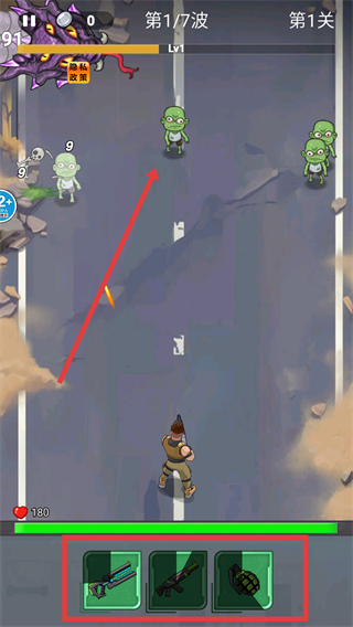 2、战斗时灵活切换【步枪】-【手榴弹】,用步枪点射单个僵尸,手榴弹炸集群,持续输出保生存。