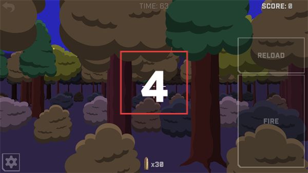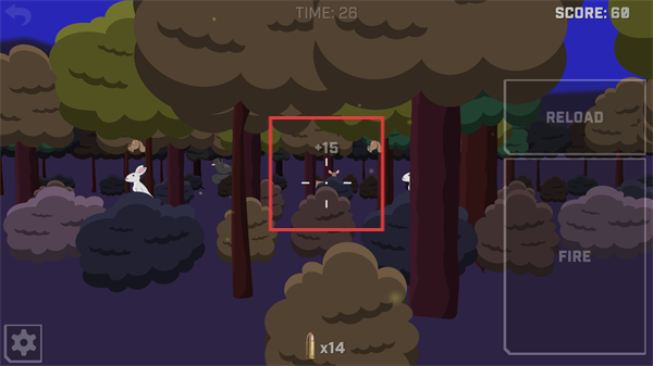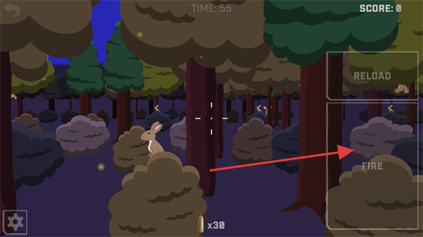 2、发现目标兔子后,点击右侧【FIRE】按钮开火,消耗弹药命中目标积累分数。
