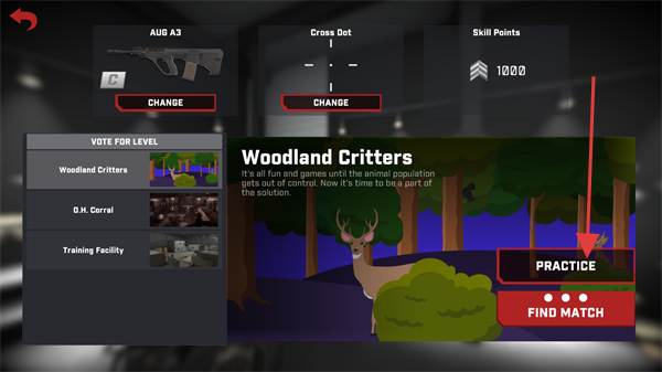 4、进入关卡界面,选择关卡,点击【PRACTICE】开始用该枪械进行实战练习。