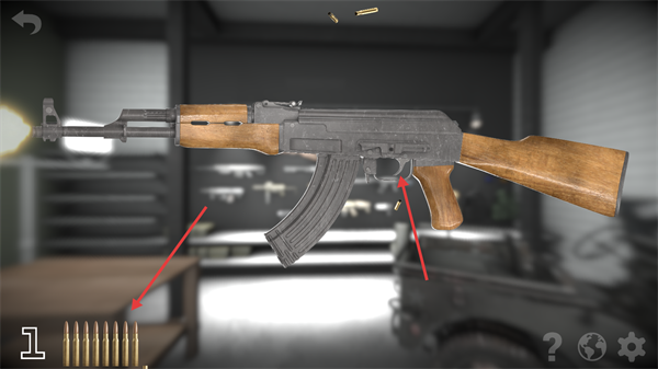 4、装填后操作枪械的开火部件,体验射击效果,同时观察弹药数量的变化。